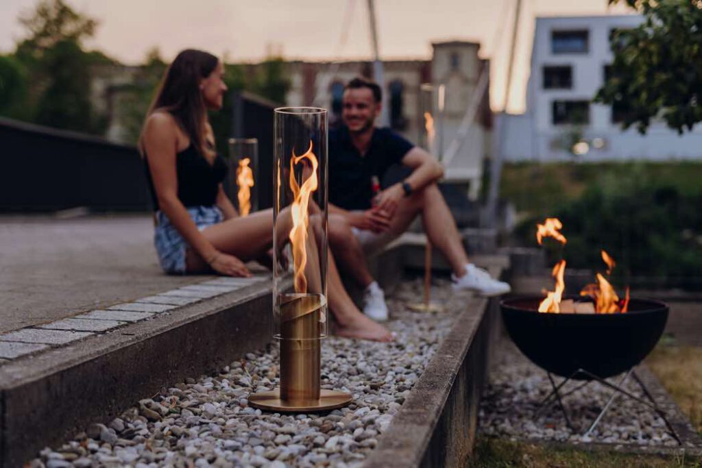 Mit dem Entzünden des Bioethanol Flüssig-Brennstoffs und dem Aufsetzen des Glaszylinders steigt die leuchtende, spiralförmige Flammen -Skulptur in Höhe. Die Flamme der Spin 900 und Spin 1200 entspringt der neuen Spin, dem patentierte Bio-Burner, der den ehemals offenen Brennbehälter ersetzt. Mit der neuen Brennertechnologie verlängert höfats die Brenndauer um bis zu einem Drittel. Wer schon eine Spin 90 oder Spin 120 besitzt, kann den bisherigen Brennstoffbehälter mit einem Handgriff durch den Bio-Burner ersetzen und das neue Flammenspektakel genießen.