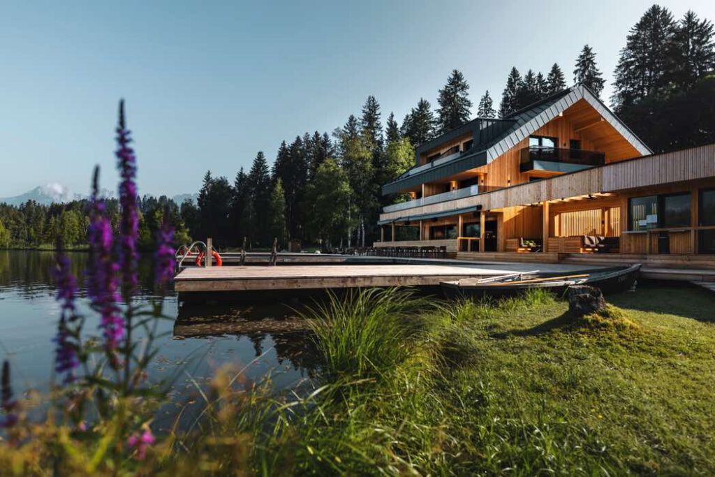 Das exklusive Interieur unterstreicht die wohlige Atmosphäre mit natürlichen Materialien, hochwertigen Textilien und edlen heimischen Hölzern. Sonnendurchflutet und puristisch zeigt sich die Lakeside Lodge – durch die zweistöckigen Panorama-Fensterfronten erlebt man den beruhigend schönen Ausblick auf den Schwarzsee und die Natur. Das private Wellbeing ist perfekt: Jede Suite der Lakeside Lodge bietet eine große Panorama-Sauna mit angrenzender Wellnessdusche. In den Obergeschossen des Steghauses befinden sich fünf Rooftop-Suiten, von deren Terrassen aus man das Gefühl hat, nicht nur am, sondern direkt im Schwarzsee zu sein. Die Suiten selbst sind elegant und kuschelig zugleich. Verweilen wird hier auf eine neue Stufe gehoben.
