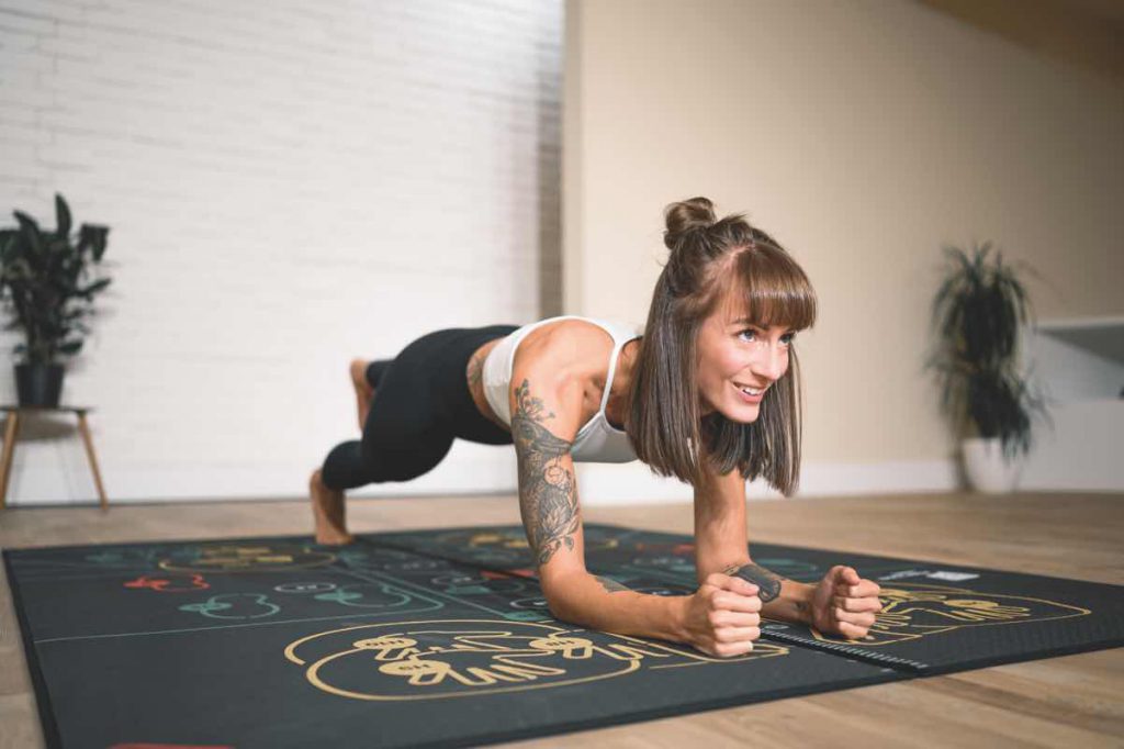 Damit die Motivation und das Aktivitätslevel hoch bleiben, erklärt der digitale Personal Coach jede Übung und macht jede Wiederholung in der individuell erforderlichen Anzahl aktiv mit! Um ein einfaches Verständnis zu gewährleisten, beziehen sich die Erklärungen und Bewegungen auf jedes Workout. Darüber hinaus sind beispielsweise Kinn-, Fuß- und Handpositionen auf der Personal-MAT markiert: Zusätzlich zur Ansage „rechter Fuß auf F1“ wird die Matte als zusätzliche Animation auch auf dem Bildschirm des präferierten Devices eingeblendet.