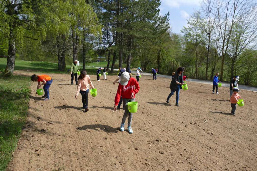 Foto 1 und 2: Das Projekt wird in vielen Golfanlagen gezielt auch für Bildungsmaßnahmen genutzt. In Zusammenarbeit mit dem Naturpark Schwarzwald Mitte/Nord durften Kinder des Stuttgarter Golf-Club Solitude eine Blühwiese für Bienen und Insekten einsäen.