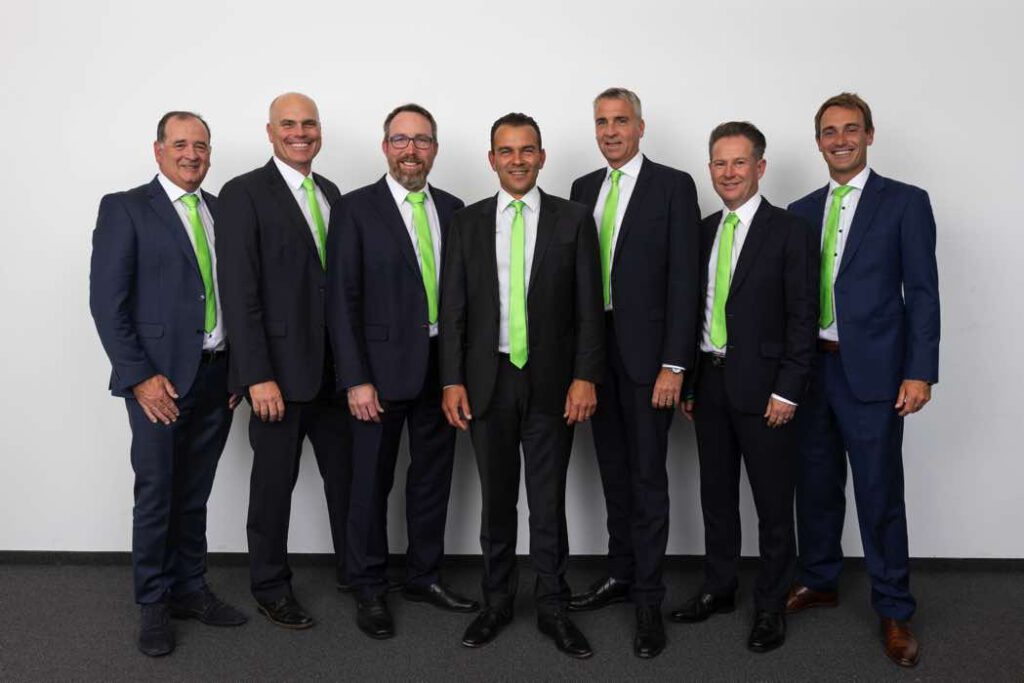 In den kommenden drei Jahren sind Anthony Lloyd als Beisitzer, Ralf Pütter als Schatzmeister, Vizepräsident Oliver Neumann, der 1. Vorsitzende Kariem Baraka sowie die weiteren Beisitzer Marco Kaussler, Paul Dyer und Florian Fritsch (v.l.) für den PGA of Germany e.V. verantwortlich. Sie bilden den Vorstand des Berufsverbands der Golfprofessionals in Deutschland und wurden am 19. September 2021 von den Mitgliedern der PGA of Germany gewählt.