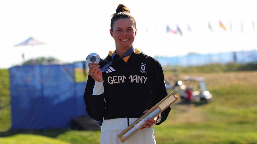 Wiesbaden, 12. August 2024. Es ist der größte Erfolg in ihrer noch jungen Karriere, Golf-Team-Germany-Spielerin Esther Henseleit gewinnt beim olympischen Golfturnier die Silbermedaille für Deutschland. Mit insgesamt acht Schlägen unter Par nach vier Runden (72, 73, 69, 66) auf dem Golfplatz Le Golf National bei Paris, landete die 25-Jährige auf dem zweiten Platz. Olympisches Gold holte die Neuseeländerin Lydia Ko (-10), Dritte wurde die Chinesin Xiyu Lin. Den 35. Platz belegte die Berlinerin Alexandra Försterling mit insgesamt vier Schlägen über Par (76, 75, 71, 70). Mit dem Erfolg ist auch die Vision Gold, die der Deutsche Golf Verband (DGV) 2012 formuliert hat, ein ganzes Stück weit Realität geworden.