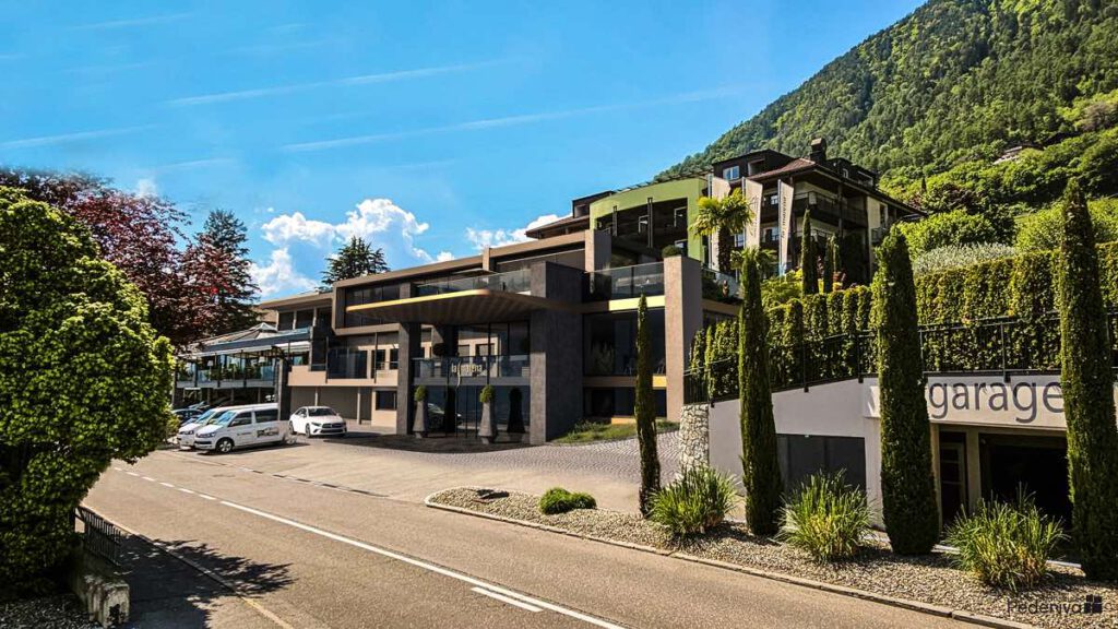 Großzügigkeit und Lifestyle sind die Devisen fürs Wohlfühlen. Die Fassade fügt sich mit neuem Farbkonzept perfekt inmitten der umliegenden Apfelplantagen und Bergkulisse ein. Die Rezeption wurde eine Etage nach unten verlegt. Ein Hingucker ist der gesamte Lobbybereich mit Check-in-Lounge, gemütlichen Polstermöbeln und einer „lebenden Wand“. Die Hotelbar wird mit Weinschrank und Degustation Table zum neuen place to be. Schon vor der aufwändigen Renovierung mit Infinity Pool, Familien-Wellnessbereich und Saunawelt zählte es zu den besten Wellnessoasen Südtirols. Nun wird mit einer neuen Saunawelt, Whirlpool, Fitnessbereich und Relax-Bereichen das i-Tüpfelchen geboten.