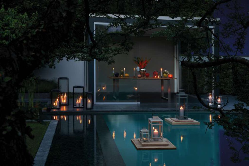 Gut gesetzte Licht- und Farbakzente wirken auch im Garten oder auf der Terrasse wahre