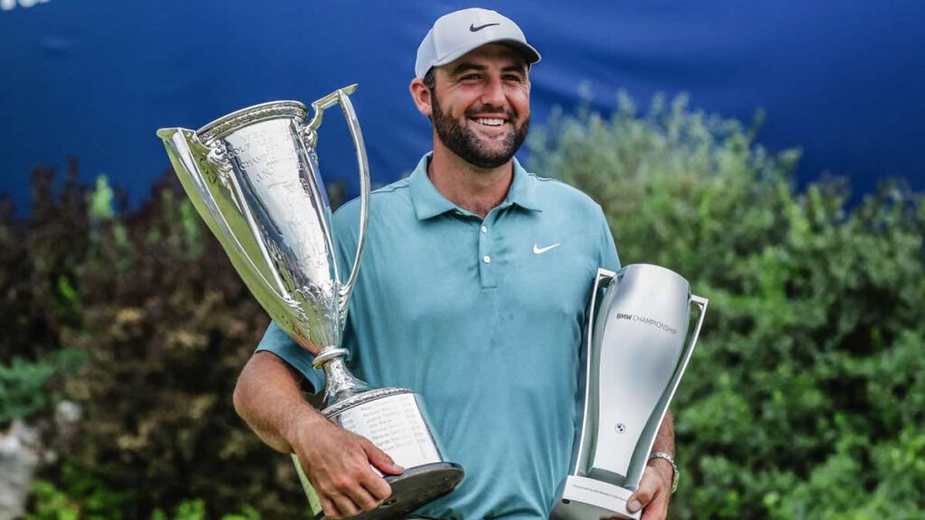 Scottie Scheffler (USA) beendet das Turnier mit 265 Schlägen (15 unter Par) und gewinnt die BMW Championship im Caves Valley Golf Club (Owings Mills, Maryland) Damit feiert die Nr. 1 der Welt den fünften Sieg der Saison und den 18. Titel seiner Karriere.