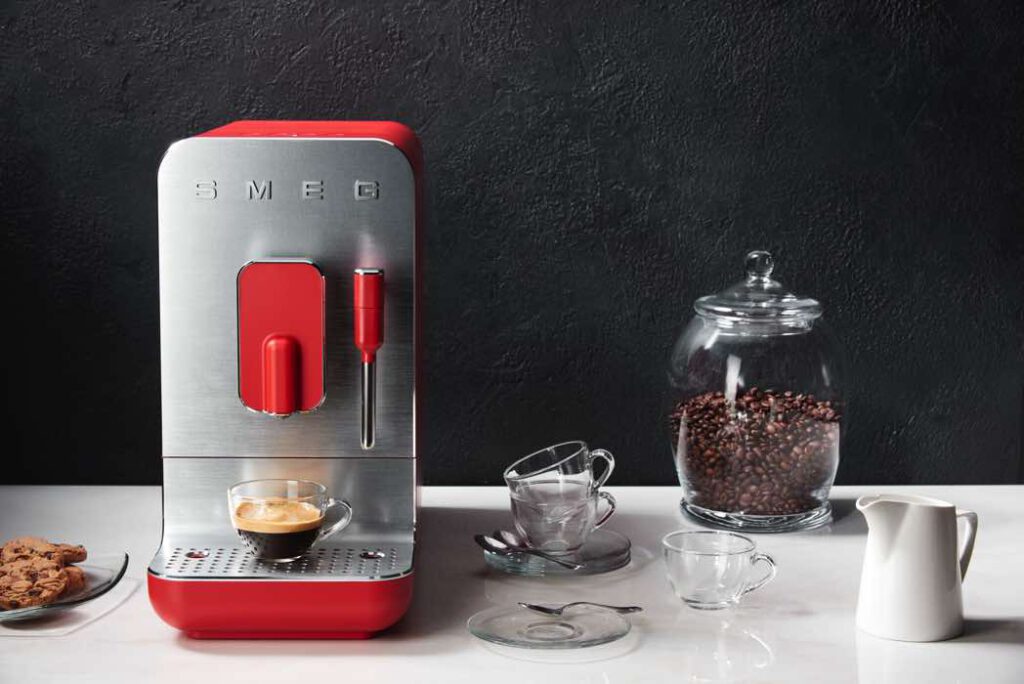 Der italienische Hausgeräte-Hersteller Smeg hat eine neue Gerätelinie mit Kaffeevollautomaten vorgestellt. Mit nur 18 cm Breite machen die neuen Vollautomaten auf der Arbeitsfläche jeder Küche eine gute Figur. Das liegt zum einen an der puristisch-matten Oberfläche. Zum anderen wirkt die edle Front aus gebürstetem Aluminium mit polierter Abschlusskante elegant. Die Bedienelemente sind dezent und besonders ergonomisch oben auf der Maschine angebracht. Stylisch präsentiert sich auch die Farbauswahl: