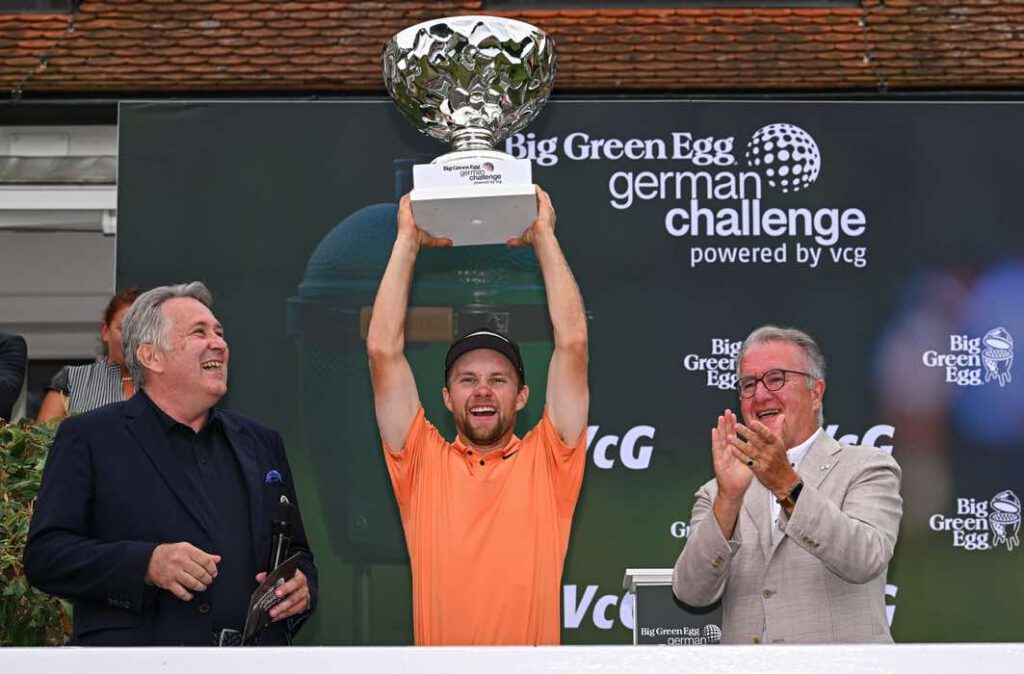 | 08. September 2024 – Historischer Erfolg im Wittelsbacher Golfclub: Rasmus Neergaard-Petersen feiert in Neuburg an der Donau nicht nur den Sieg bei der Big Green Egg German Challenge powered by VcG. Dem Dänen gelingt mit seinem dritten Titel in dieser Saison ein besonderes Kunststück. Als erst zwölfter Spieler in der Geschichte der Challenge Tour seit 1989 steigt er dank seines Hattricks während der Saison direkt auf die DP World Tour auf. Gleichzeitig folgt er seinen inzwischen berühmten dänischen Kollegen Thomas Björn sowie Rasmus und Nicolai Højgaard, deren Karrieren ebenfalls über die Challenge Tour Schwung aufnahmen.