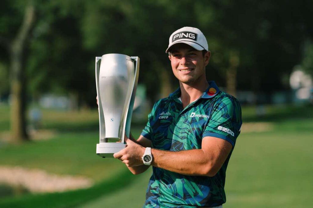 Mit einer sensationellen Finalrunde im Olympia Fields Country Club gewinnt Viktor Hovland die BMW Championship mit einem neuen Platzrekord. Es ist der zweite BMW Titel für den Norweger.